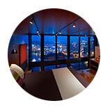 PITTSBURGH MONOSPACE pittsburgh, pennsylvania Located on the edge of Mt. Washington, the scenic overlook for Pittsburgh's skyline, this interior is a new construction within a 1970's era apartment building made of brick, block and hollow core plank. Designed as a weekday apartment for an engineer, this 1,200 square foot space was conceived as a material monospace clad entirely in bamboo veneer. This interior is carefully detailed to reveal a clear logic of materials and connections. While unifying the space as a thematic ensemble of details through its mono material palette, the interior also acts as a overlapping series of open areas which at times can be spatially reconfigured. There are no static series of rooms- instead the space is dynamic and changeable - as exemplified by the rotating couch. While the windows remains fixed, the rotating couch allows for spatial flexibility and select views of the city of Pittsburgh and its landscape. The consistent material tone extends and exaggerates the spaciousness of this small interior. A series of mechanized elements allow for a variety of spatial configurations. A rotating floor that contains the couch and bar seating area redirects the living space into position for views of the city, Heinz Field or to the kitchen, dining or bar areas. The second level has a large sliding door with a more conventional door within to subdivide the sleeping area from the adjacent study/guest sleeping area. Glass areas within the baths are glazed with SwitchLight glazing giving the bathrooms direct connections to the interior and exterior views when appropriate. |
